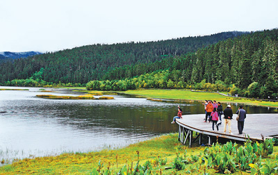 遊客在普達措國家公園內(nei) 遊覽。新華社記者 張譽東(dong) 攝
