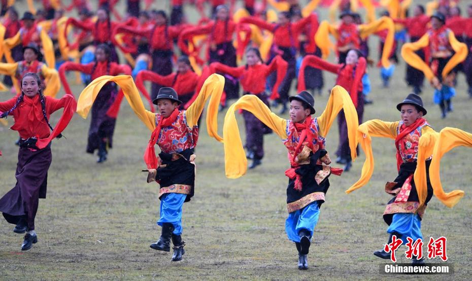 圖為(wei) 毛埡草原上孩子們(men) 展示理塘藏戲。 劉忠俊 攝