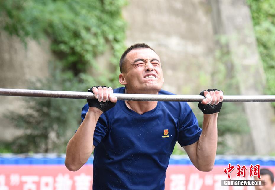圖為(wei) 消防員摩拳擦掌,迎難而戰,創造了單杠卷身上的新紀錄。 婁淵燾 攝