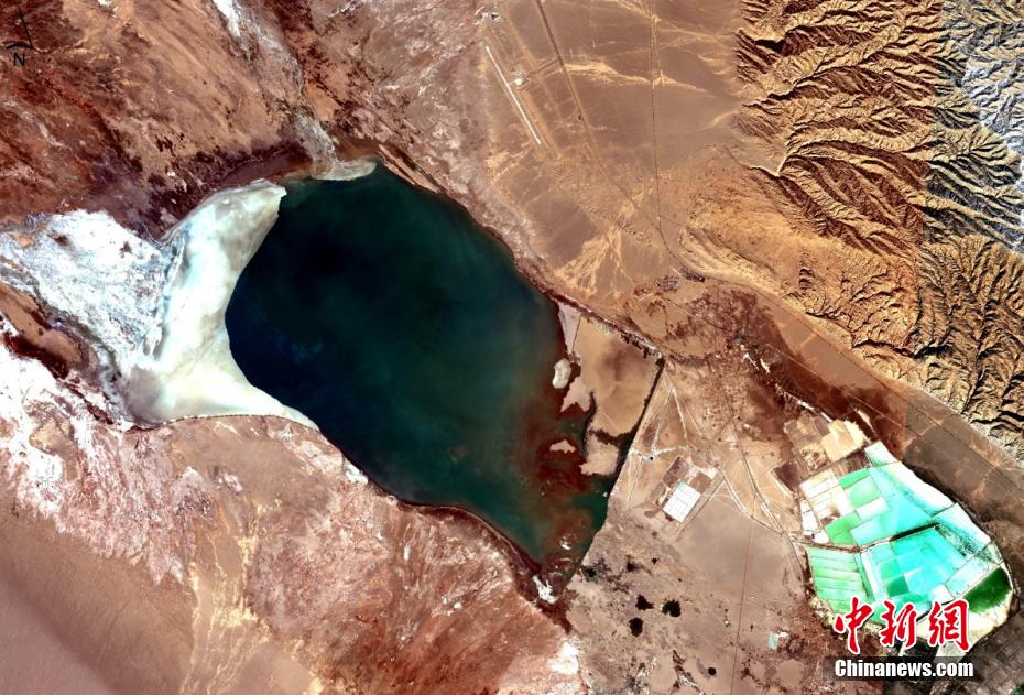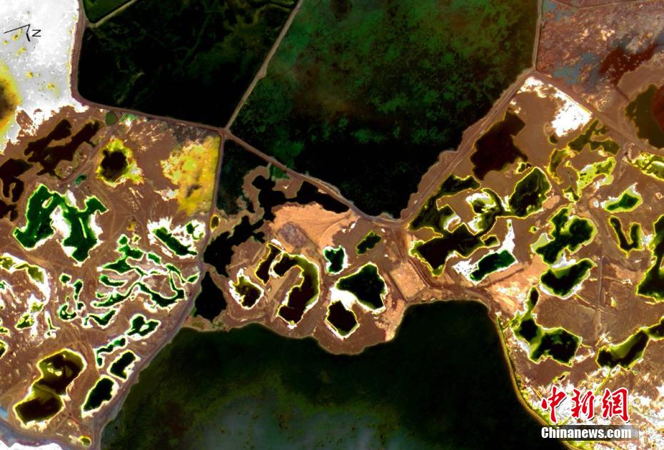 青海鹽湖的衛星視角:星羅棋布宛如碧玉