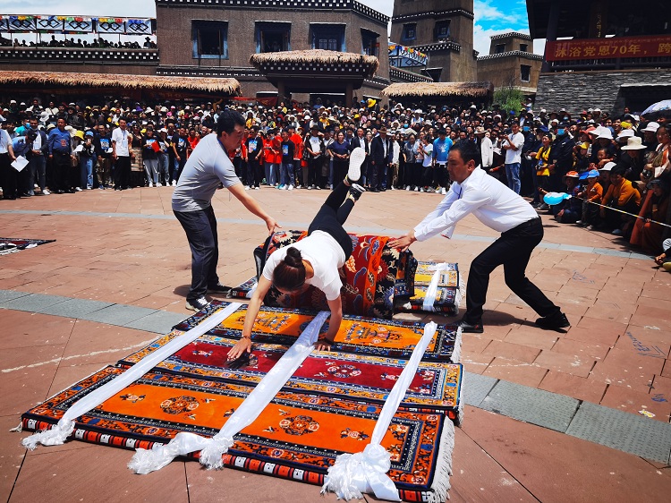 8月16日,在甘孜縣“征程70年•壯麗(li) 甘孜夢”第三屆珠牡迎秋節活動期間,甘孜縣舉(ju) 行的民族體(ti) 育競技趣味活動,吸引了來自各地的群眾(zhong) 體(ti) 驗藏族特色體(ti) 育運動項目。