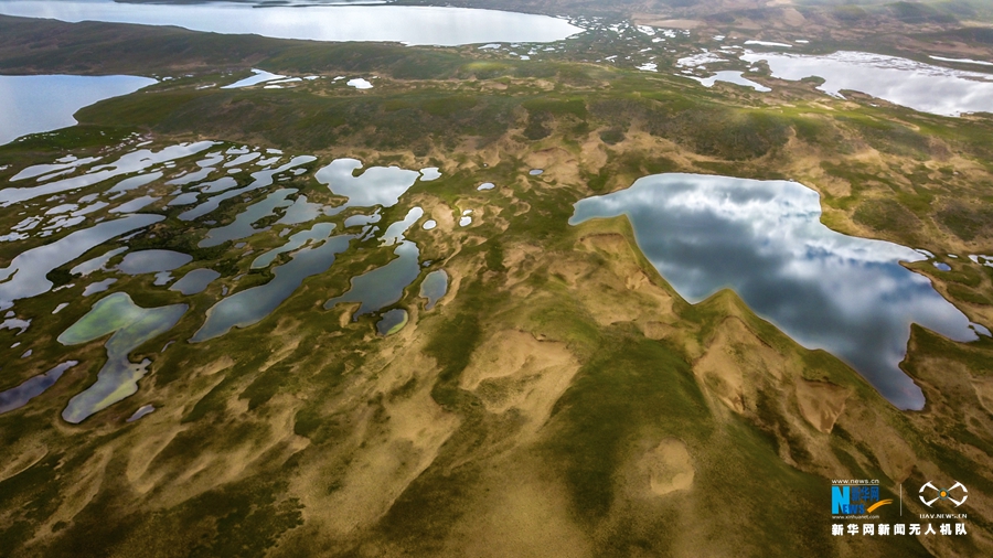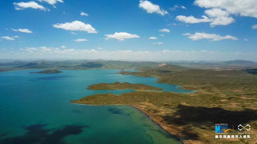 素有“千湖之縣”的瑪多縣境內(nei) 的湖泊。(航拍圖)新華網 宋忠勇 攝
