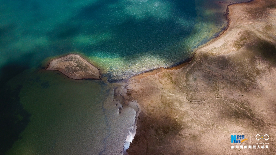 素有“千湖之縣”的瑪多縣境內(nei) 的湖泊。(航拍圖新華網 宋忠勇 攝)