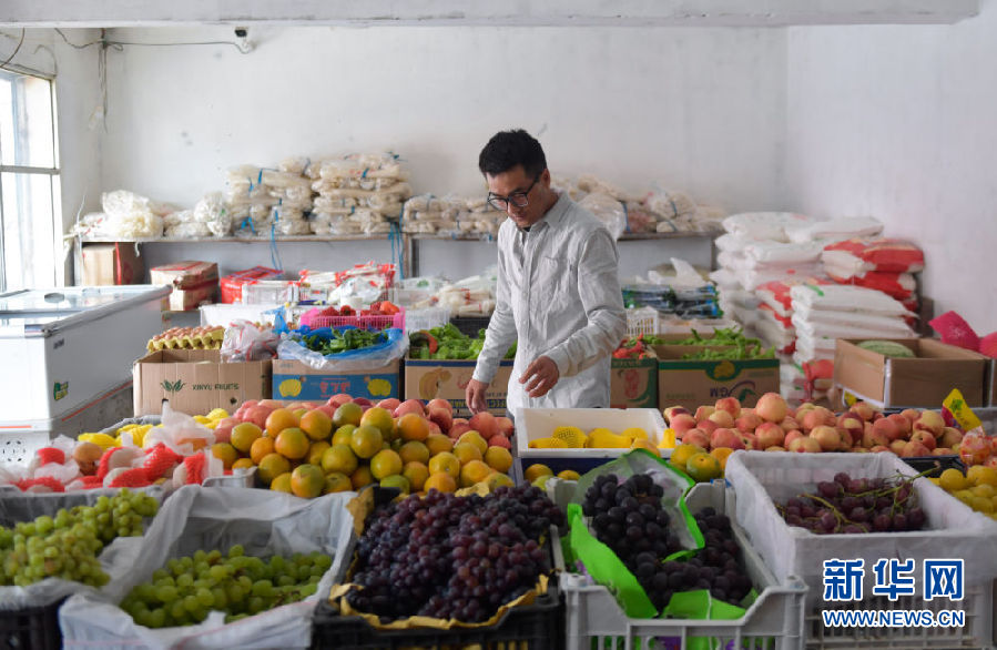 8月13日,尤拉太在返鄉(xiang) 前到興(xing) 海縣一家水果店內(nei) 購物。新華社記者 張龍 攝
