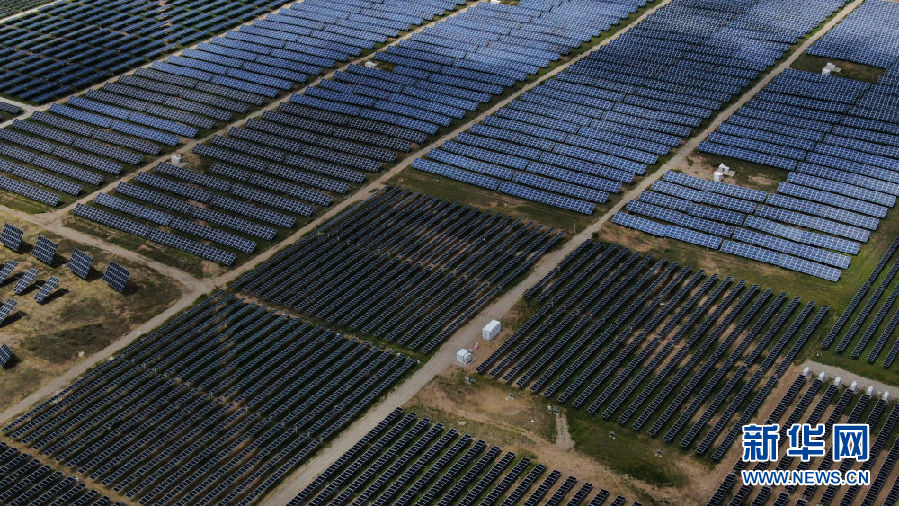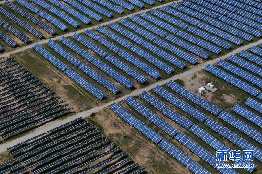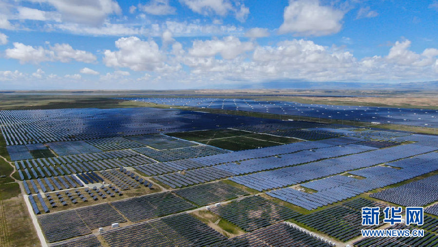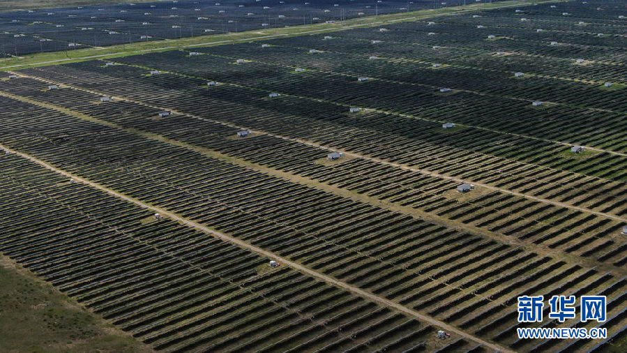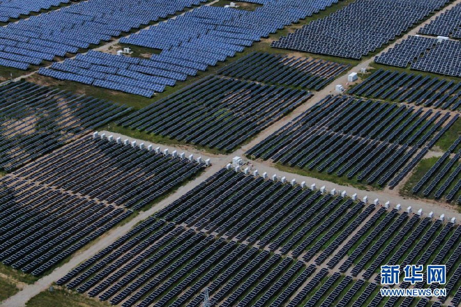 這是8月17日在青海省海南藏族自治州共和縣塔拉灘綠色產(chan) 業(ye) 發展園區拍攝的光伏電站(無人機照片)。新華社記者 張龍 攝
