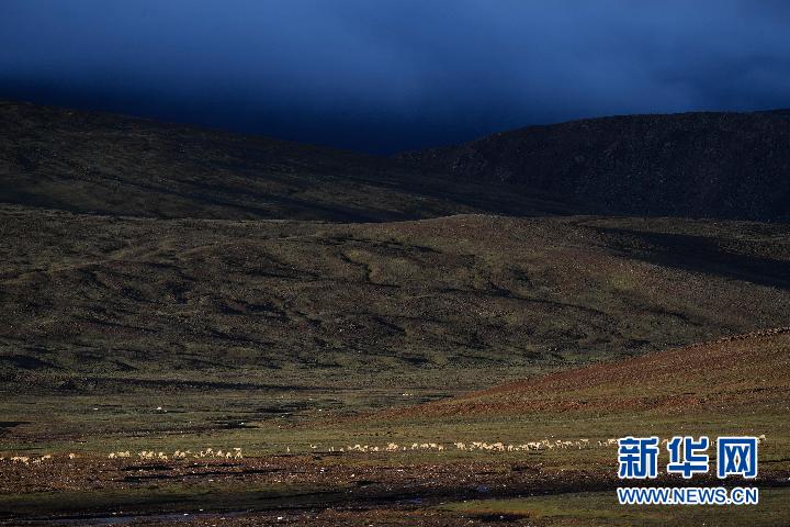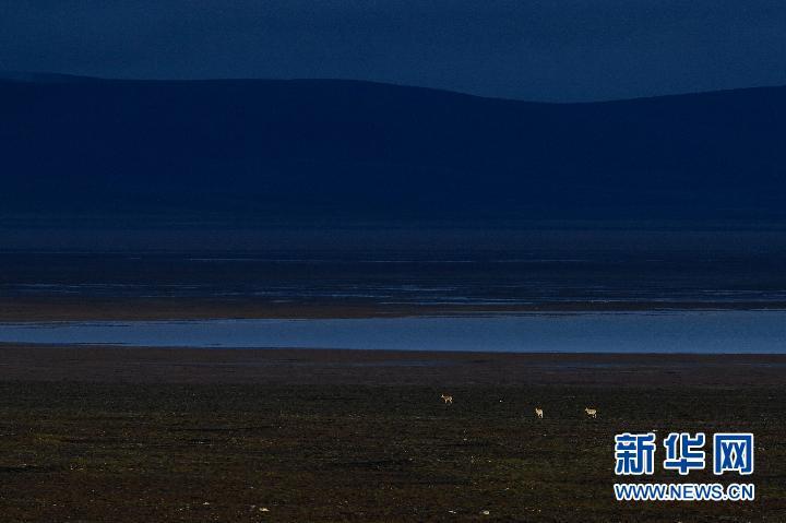 暮色漸濃,可可西裏腹地的卓乃湖,空氣中透著寒意。一群群藏羚羊向湖畔山坳進發,躲避寒風。