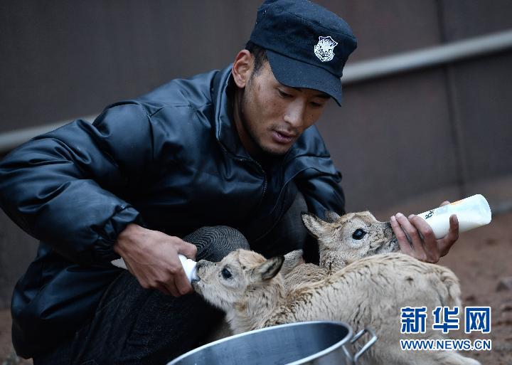 才文多傑笑著說: “我能照顧好小藏羚羊,照顧人也沒問題。”他今年21歲,但在卓乃湖,卻是眾(zhong) 多藏羚羊幼仔的“奶爸”。
