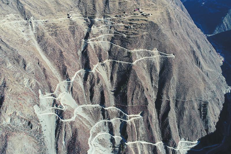 為了海拔4000米山頂14戶藏族村民 懸崖上築出一條“通天路”