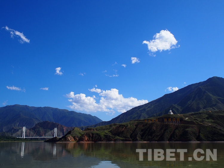 德吉村是尖紮縣2017年建成的易地扶貧搬遷村之一。走進這個(ge) 靜靜依偎在黃河臂彎裏的村莊,近處是一排排整齊的藏式院落,遠處山巒疊翠、水光雲(yun) 影。 黃河從(cong) 村前流過,收起了奔騰的氣勢,變得平靜和緩,在藍天和陽光的映照下婉如綠寶石。