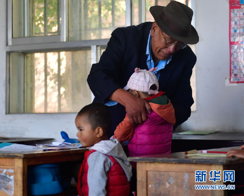 課間休息時間,完麽(me) 仁增的視線仍離不開這7個(ge) 孩子。“最小的才3歲,有的孩子調皮,我就得時刻盯緊他們(men) ,像帶了7個(ge) 親(qin) 孫子。”他笑著說,還有三年就要退休了,隻要村民有需求,他願意繼續幹下去。