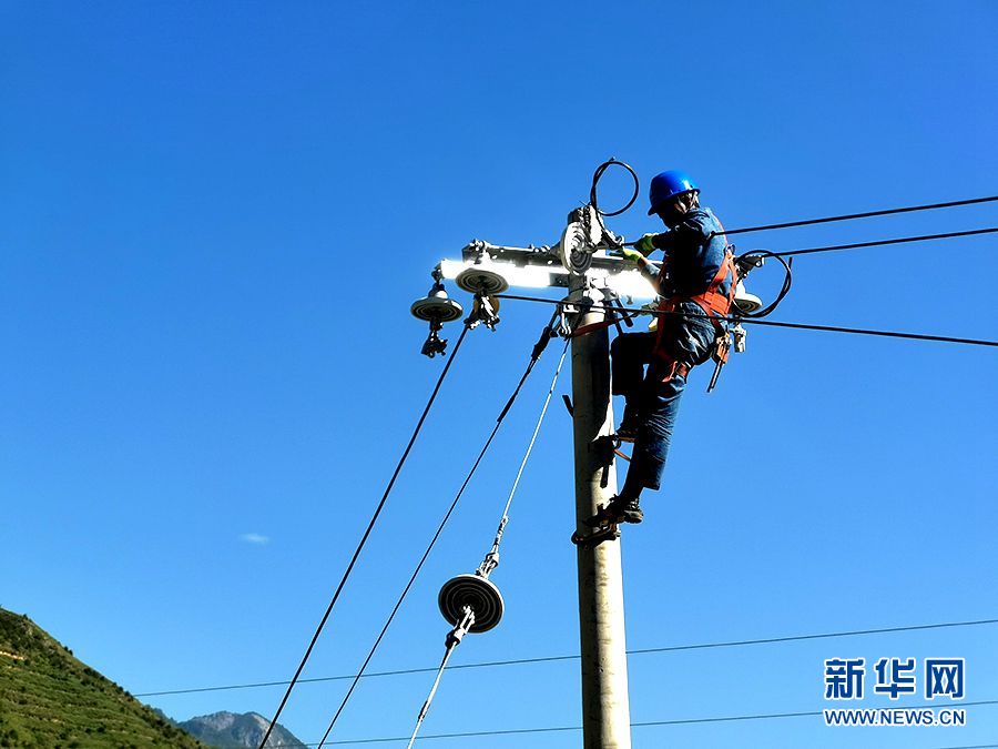 9月2日,電力工人正在搶修舟曲縣曲告納鎮的供電線路。新華網發(張靜 攝)