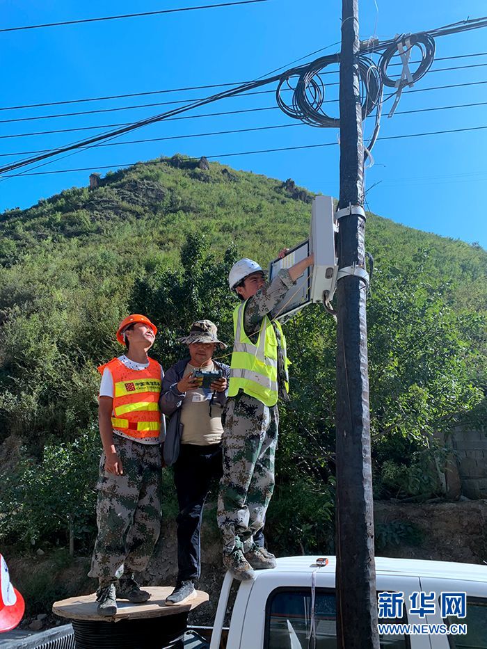 9月2日,工作人員在檢查舟曲縣的通訊設施。新華網發(蔣紫薇 攝)