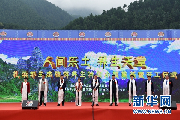 這是9月9日在甘南藏族自治州迭部縣拍攝的紮尕那生態旅遊養(yang) 生特色小鎮開工儀(yi) 式現場。 新華社記者 範培珅 攝