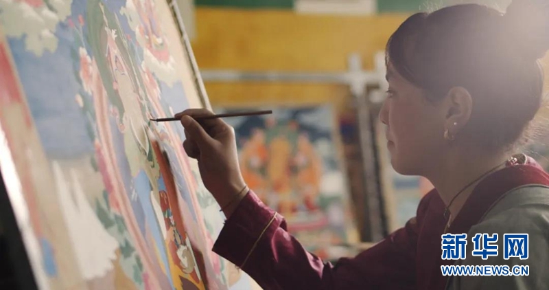 爐霍縣的貧困戶在唐卡實訓基地免費學習(xi) 唐卡技藝。