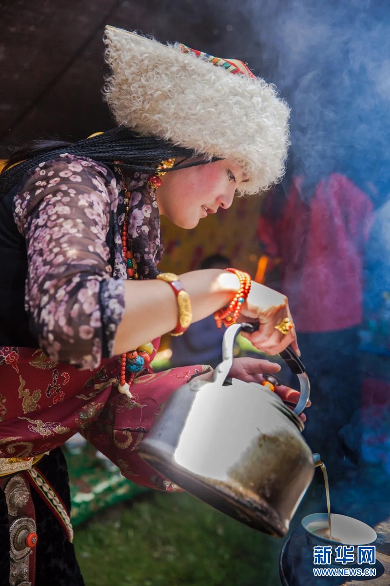 爐霍縣牧民為(wei) 客人調製酥油茶。遊建中 攝