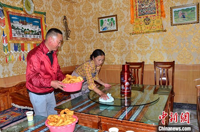圖為(wei) 8月20日紮西夫婦倆(lia) 為(wei) 客人準備晚餐。 中新社記者 魯丹陽 攝