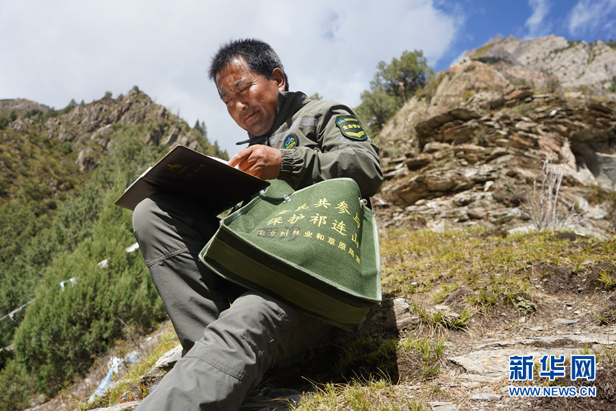祁連山國家公園青海片區油葫蘆管護站的生態管護員王學清在記錄巡山情況(9月9日攝)。新華社記者 藍翔 攝