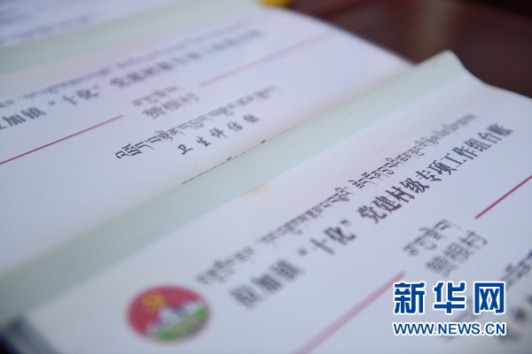 瑪沁縣拉加鎮讚根村“十化”黨(dang) 建專(zhuan) 項工作組台帳。新華網 潘彬彬 攝