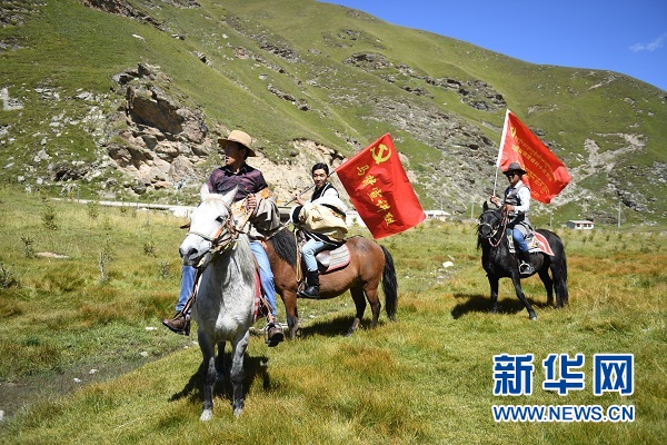 瑪沁縣拉加鎮讚根村的“馬背宣傳(chuan) 隊”。新華網 潘彬彬 攝