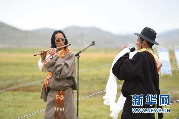 瑪沁縣大武鄉(xiang) 格多村的文藝隊表演。新華網 潘彬彬 攝