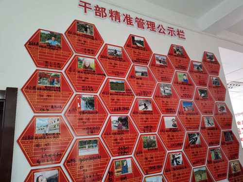 黨(dang) 政辦公樓內(nei) 部,由幾十張黨(dang) 員信息卡拚成的幹部精準管理公示欄貼滿整麵牆壁。信息卡上,每名黨(dang) 員的工作任務一目了然,更有民主評議分數反映著不同黨(dang) 員日常工作獲村民的滿意程度。