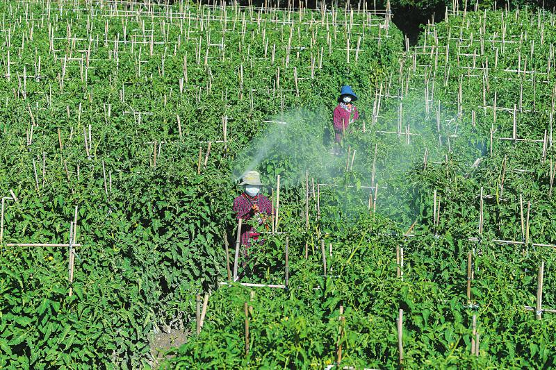 9月7日,丹巴縣甲居鎮小巴旺村村民正在田間管理30畝(mu) 番茄。楊樹 攝