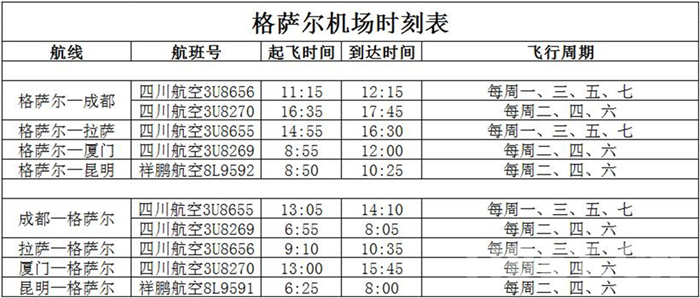 新航線開通後,甘孜格薩爾機場在飛的往返航線已有成都、拉薩、廈門、昆明,目前航線網絡正逐步完善加密。