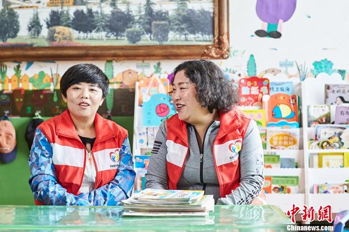 索南尖措園長(右)雖然沒有讀過書(shu) ,但他明白,這個(ge) 年齡的孩子非常需要學前教育。