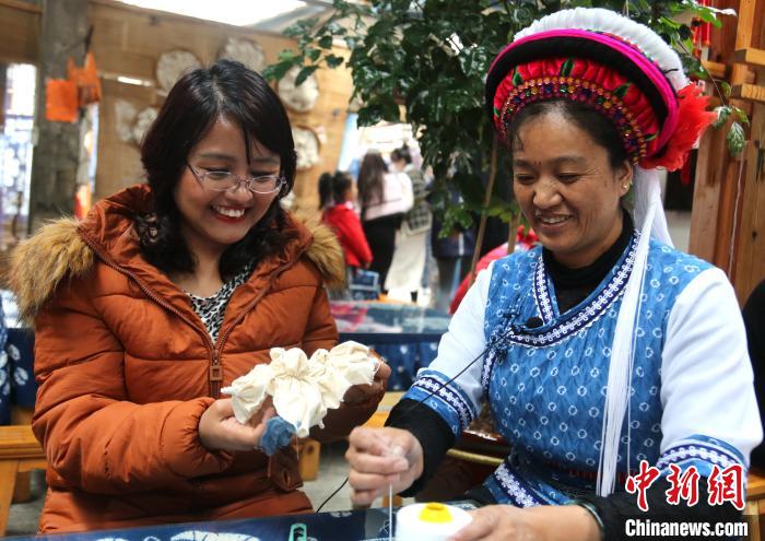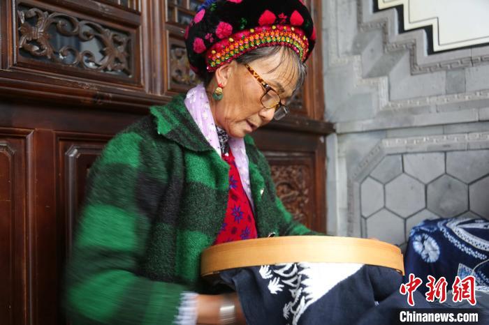圖為(wei) 雲(yun) 南省大理州白族老人展示手工絕活。張添福 攝