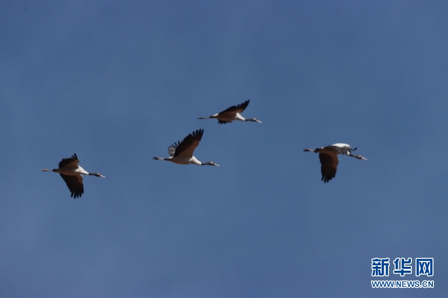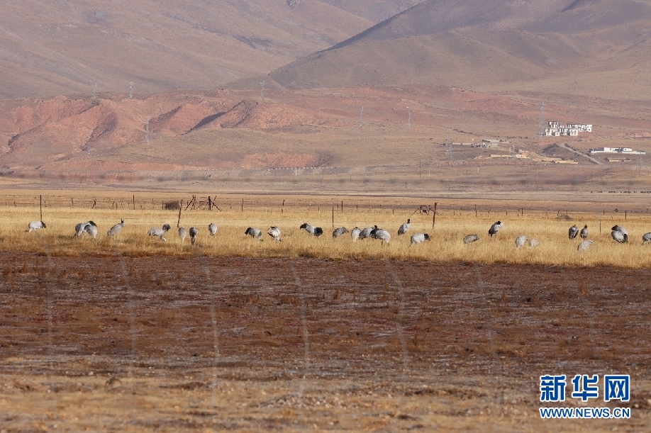 集群黑頸鶴和灰鶴。新華網發