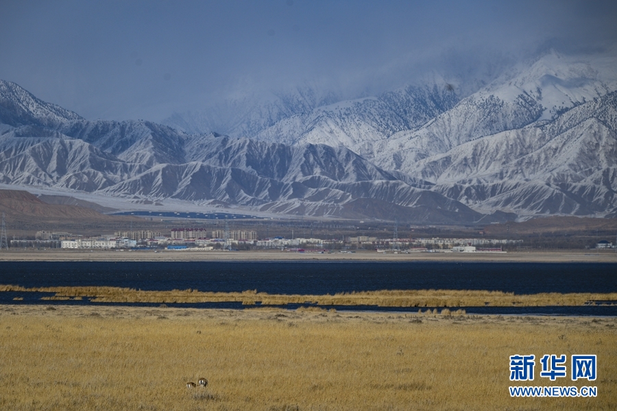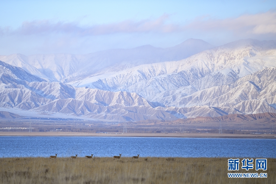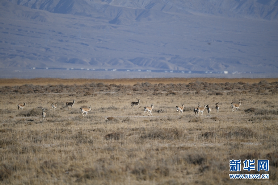 一群鵝喉羚在都蘭(lan) 湖國家濕地公園內(nei) 活動。(11月21日攝)新華網 潘彬彬 攝