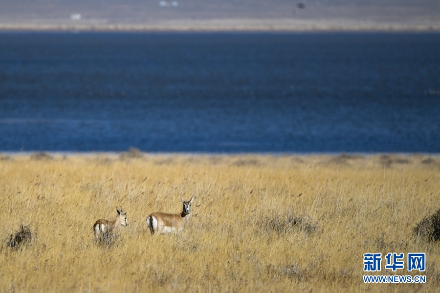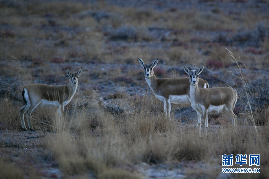 在都蘭(lan) 湖國家濕地公園內(nei) 拍攝到的鵝喉羚。(11月21日攝)新華網 潘彬彬 攝