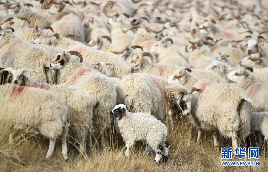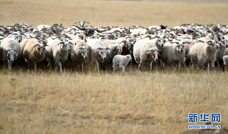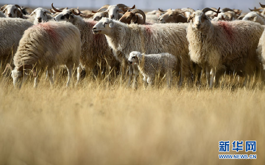 初冬時節,一場小雪浸潤了青海湖北岸的草原,披著薄紗的草原草色金黃,這裏成為(wei) 母羊產(chan) 羔的大“產(chan) 房”。