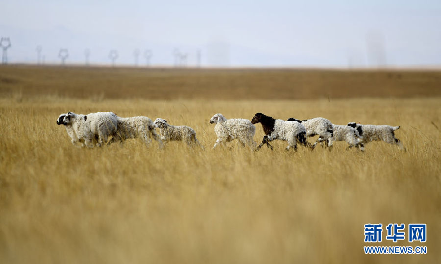 在青海省剛察縣泉吉鄉(xiang) 寧夏村,達日傑家的小羊羔在草場上(11月12日攝)。 新華社記者 張宏祥 攝