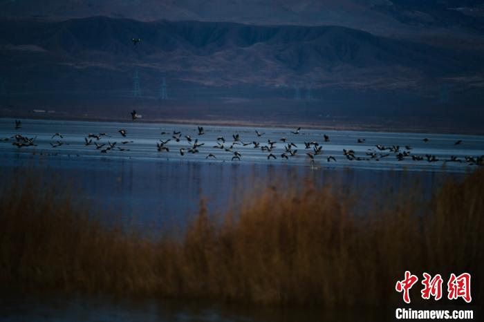 青海柴達木盆地都蘭湖國家濕地公園引數萬隻野生鳥類越冬