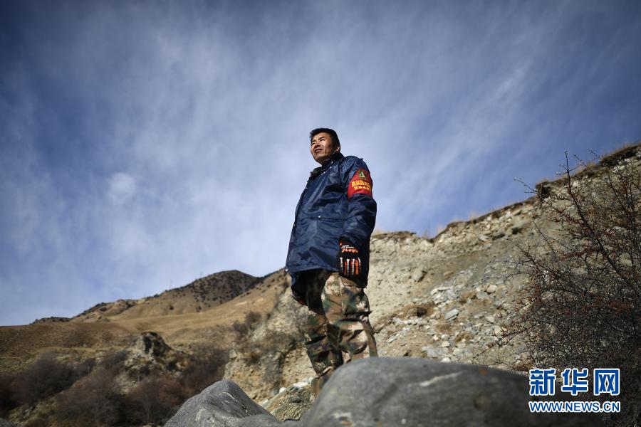 12月8日,祁連山國家公園紮麻什管護站生態管護員多傑昂秀在巡護途中。新華社記者 張宏祥 攝