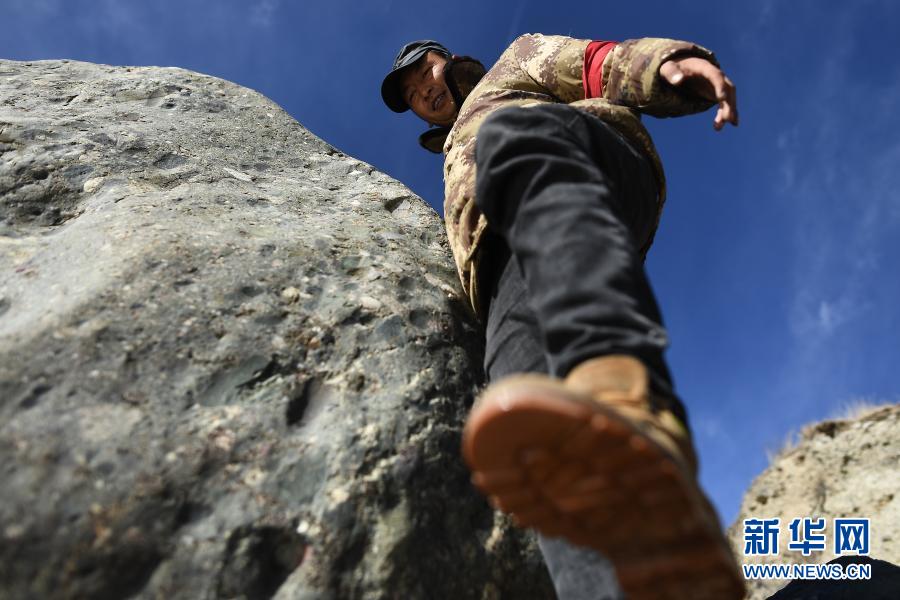 12月8日,祁連山國家公園紮麻什管護站生態管護員索安拉什旦在巡護途中。新華社記者 張宏祥 攝