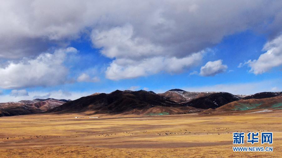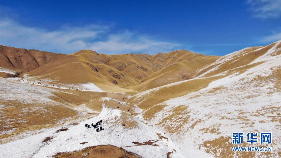 在青海省祁連縣,一群犛牛在雪後活動(12月7日攝,無人機照片)。新華社記者 張宏祥 攝