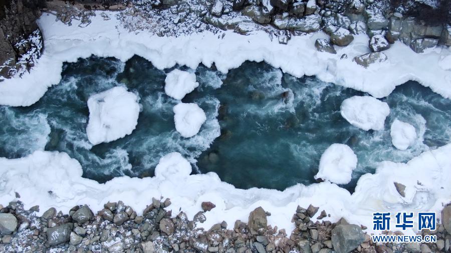 這是青海省祁連縣境內(nei) 的黑河峽穀風光(12月10日攝,無人機照片)。新華社記者 張宏祥 攝