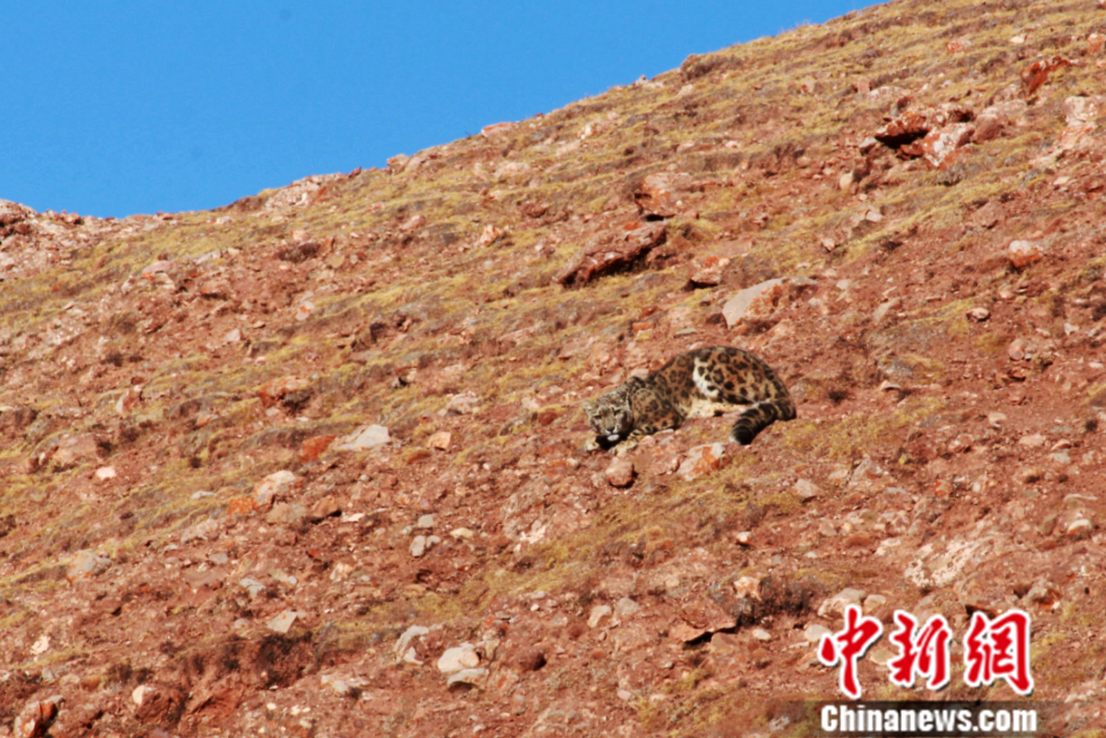 圖為(wei) 臥在山坡的雪豹。羅鬆紮西 攝