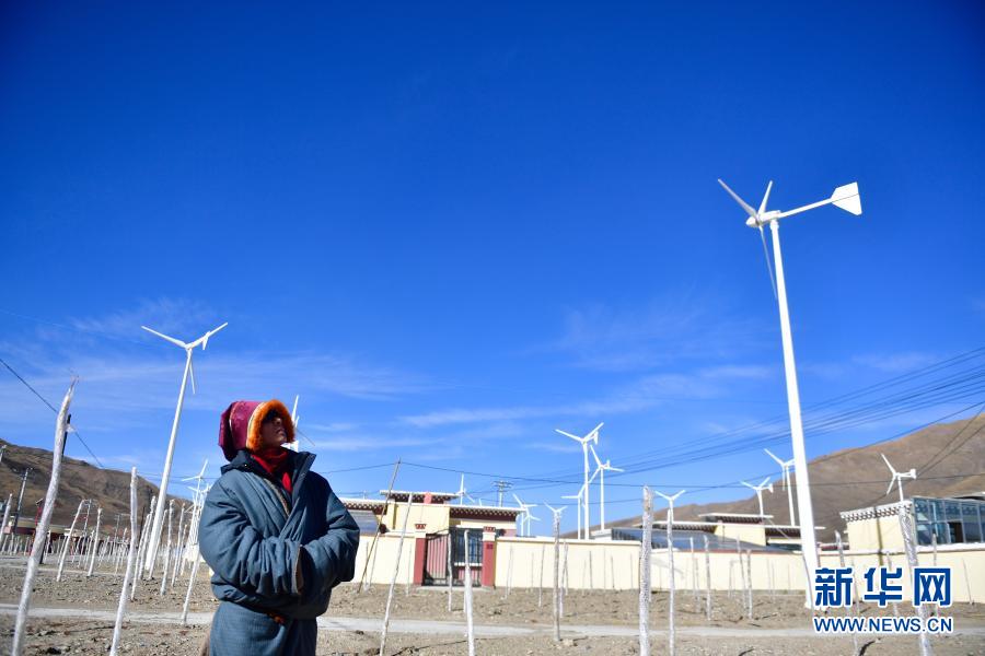 1月11日,隆亞(ya) 村村支部書(shu) 記貢保多傑在查看搬遷點的風力發電機組運行情況。新華社記者 張龍 攝