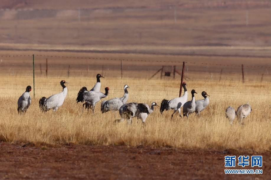 青海玉樹黑頸鶴數量達曆史最高峰值