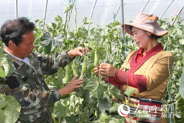 “你們(men) 要把瓜葉分叉中長出的小瓜叉去掉,這樣就能減少瓜養(yang) 分的消耗,長出的西瓜才能又大又甜。”一位山東(dong) 漢子在蔬菜大棚裏向當地的農(nong) 牧民傳(chuan) 授種植西瓜的心得。2016年10月,理塘縣引進瑪吉阿米農(nong) 業(ye) 開發有限公司,修建58個(ge) 現代化標準大棚,並從(cong) 山東(dong) 引進了溫帶瓜果蔬菜的現代化種植技術。