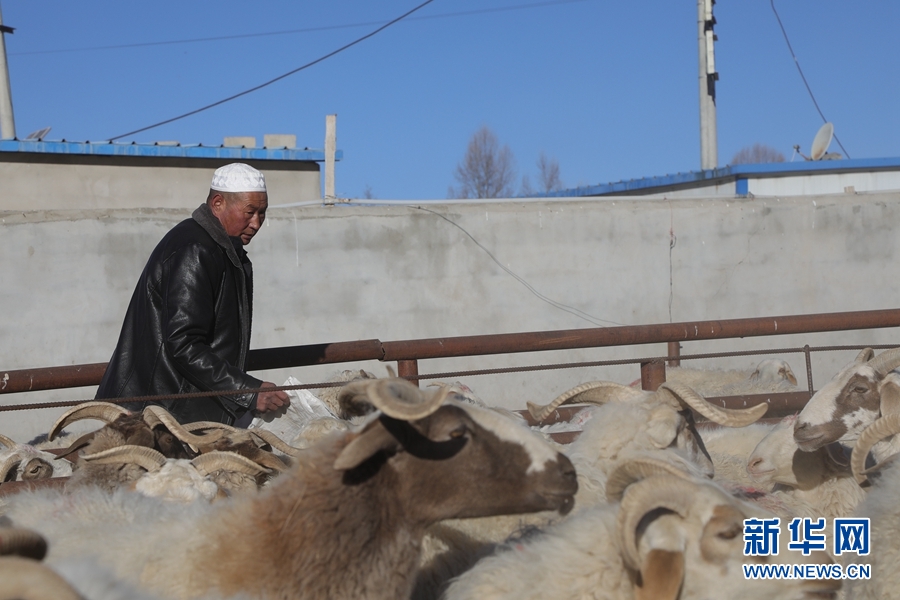 青海省海南藏族自治州共和縣興(xing) 隆肉羊養(yang) 殖專(zhuan) 業(ye) 合作社負責人馬生海在喂羊(1月28日攝)。新華社記者 趙玉和 攝