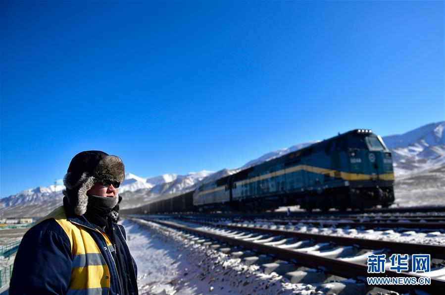 2月2日,在青藏鐵路公司西寧供電段哈爾蓋工區負責鐵路線上,郭勝強(左)與(yu) 羅露露在登高空作業(ye) 車。新華社記者 張龍 攝