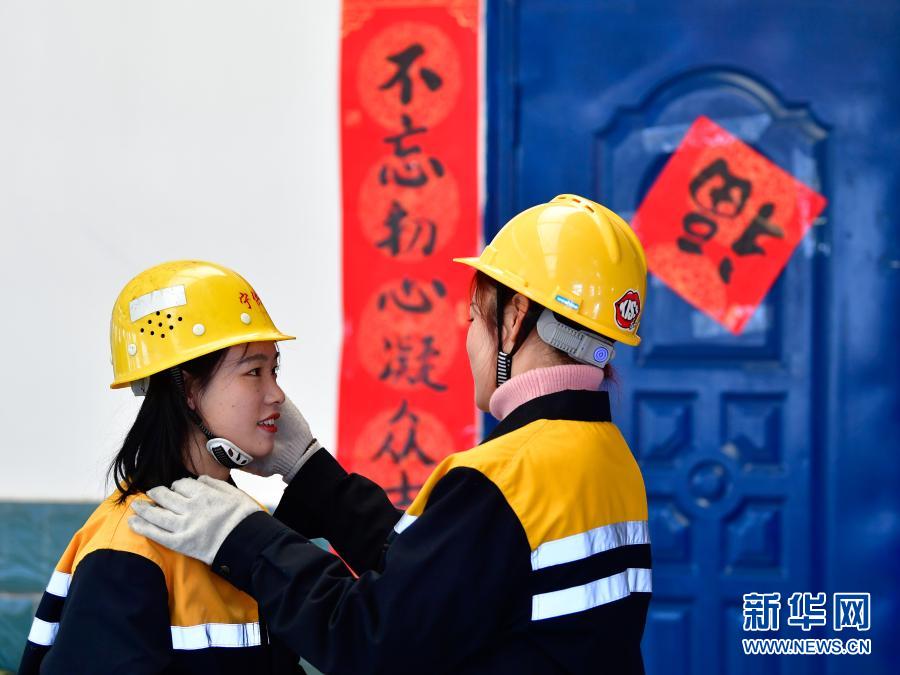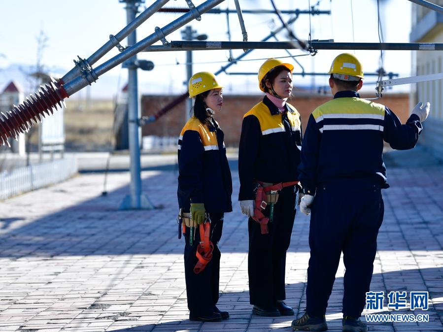 2月2日,在青藏鐵路公司西寧供電段哈爾蓋工區,郭勝強(左)與(yu) 羅露露在工作前互相檢查安全裝備。新華社記者 張龍 攝