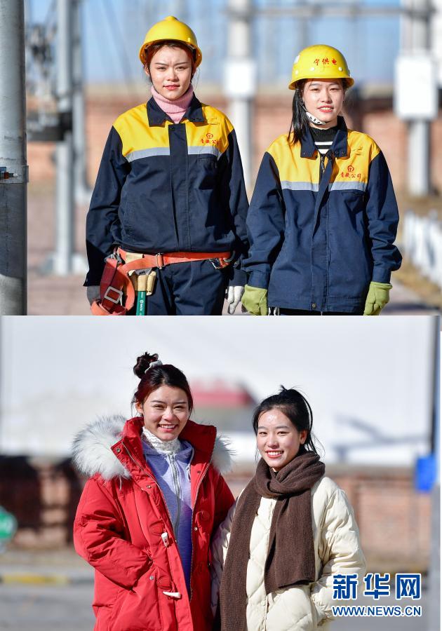 這是一張拚版照片,上圖為(wei) :羅露露(左)與(yu) 郭勝強在工作前拍攝的合影(2月2日攝);下圖為(wei) :羅露露(左)與(yu) 郭勝強在休息時拍攝的合影(2月2日攝)。新華社記者 張龍 攝
