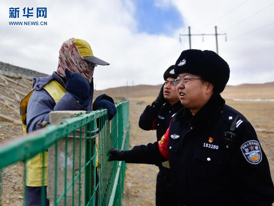 2月4日,沱沱河站派出所巡線民警在唐古拉站巡查。新華社記者 張龍 攝