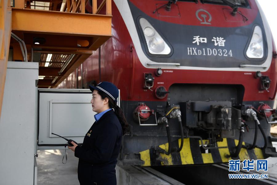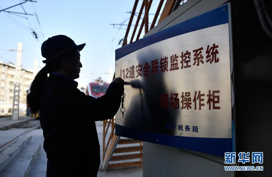 2月24日,在青藏鐵路公司西寧機務段整備車間,隔離開關(guan) 班組成員李娟在工作中。新華社記者 張曼怡 攝