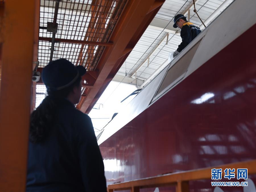 2月24日,在青藏鐵路公司西寧機務段整備車間,隔離開關(guan) 班組成員賀霞(左)和王麗(li) 在工作中。新華社記者 張曼怡 攝
